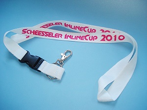 ![]() | | Lenyard weiß, mit zwei Beschriftungen auf dem Band. Ca. 40 cm langes
